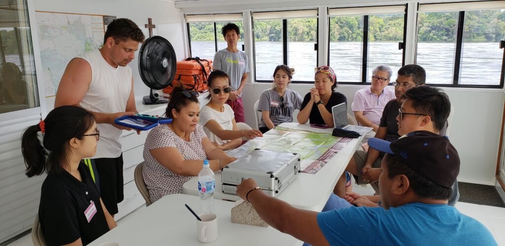 Atuamos nos territórios do Médio e Alto Rio Negro em parceria com as comunidades indígenas e ribeirinhas, levando atendimentos em saúde integral e atividades de cuidado e bem-estar por meio de equipes voluntárias em expedições fluviais periódicas. Em uma região de geografia complexa, com acesso e logística desafiadores, o Barco-Hospital Missionária Rute é hoje a única inciativa desse tipo em atividade na área.